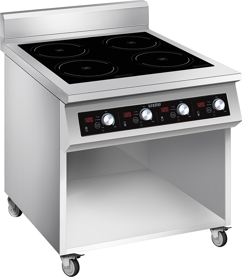 Электрическая плита VIATTO VA-500H1A используется на предприятиях общественного питания, торговли и пищевых производствах для приготовления широкого спектра блюд в наплитной посуде. Тип установки - напольная. Сплошная варочная поверхность. Модель оснащена подставкой со встроенным шкафом. Регулировка температуры и длительности приготовления при помощи электромеханической панели, индикация заданных параметров осуществляется на светодиодных цифровых дисплеях. Материал корпуса - нержавеющая сталь.