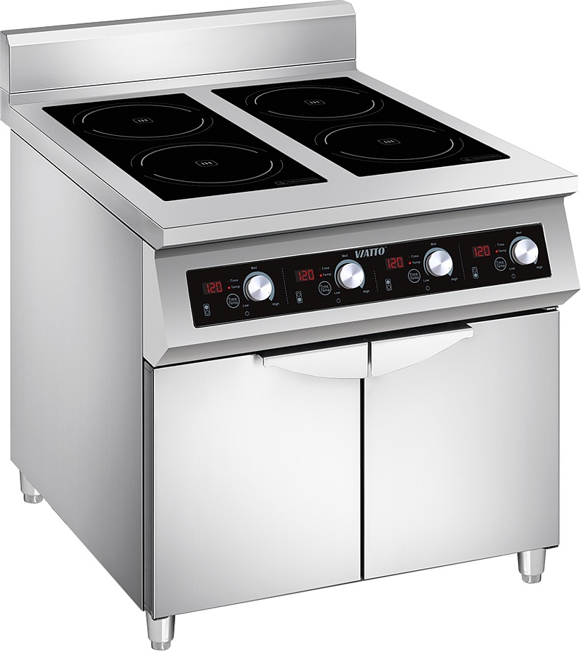 Электрическая плита VIATTO VA-500H2B используется на предприятиях общественного питания, торговли и пищевых производствах для приготовления широкого спектра блюд в наплитной посуде. Тип установки - напольная. Сплошная варочная поверхность. Модель оснащена подставкой со встроенным шкафом. Регулировка температуры и длительности приготовления при помощи электромеханической панели, индикация заданных параметров осуществляется на светодиодных цифровых дисплеях. Материал корпуса - нержавеющая сталь.