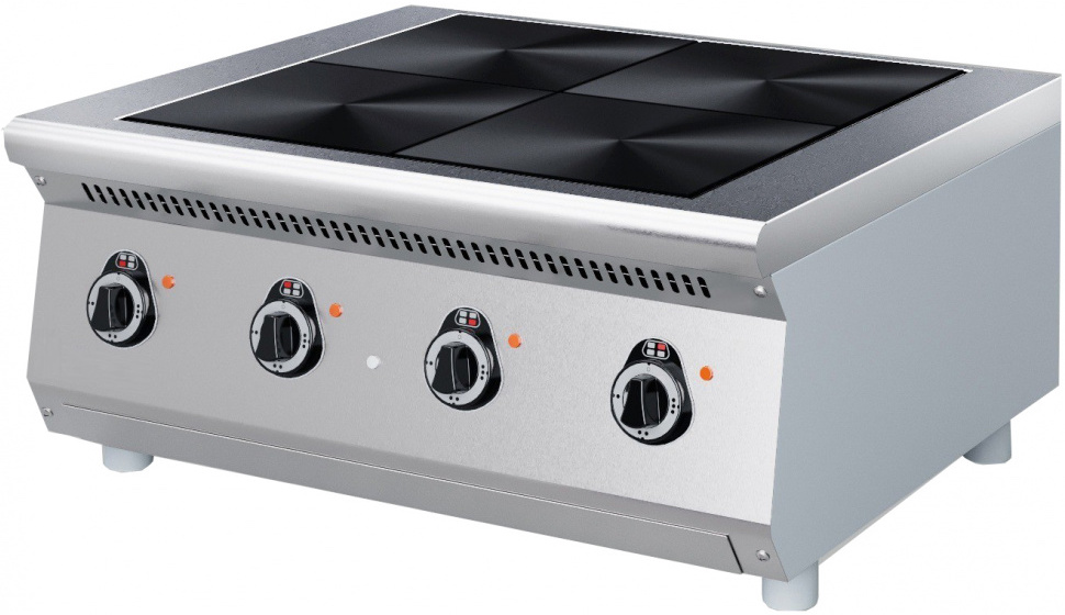 Электрическая плита KAYMAN ПЭ-4-12-МХ используется на предприятиях общественного питания, торговли и пищевых производствах для приготовления блюд в наплитной посуде. 4 терморегулятора на передней панели. Материал столешницы и лицевой панели - нержавеющей стали, боковины окрашены.