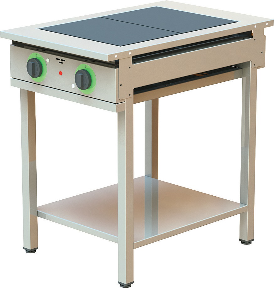 Gabino S2P-01 используется на предприятиях общественного питания, торговли и пищевых производствах для приготовления блюд в наплитной посуде. Возможность ступенчатой регулировки мощности и раздельной регулировки мощности верхнего и нижнего блоков ТЭНов. Плита оснащена индикационными лампами включения, съемными боковыми полками, сплошной нижней полкой и ножками, регулируемыми по высоте. Модель выполнена полностью из нержавеющей стали.