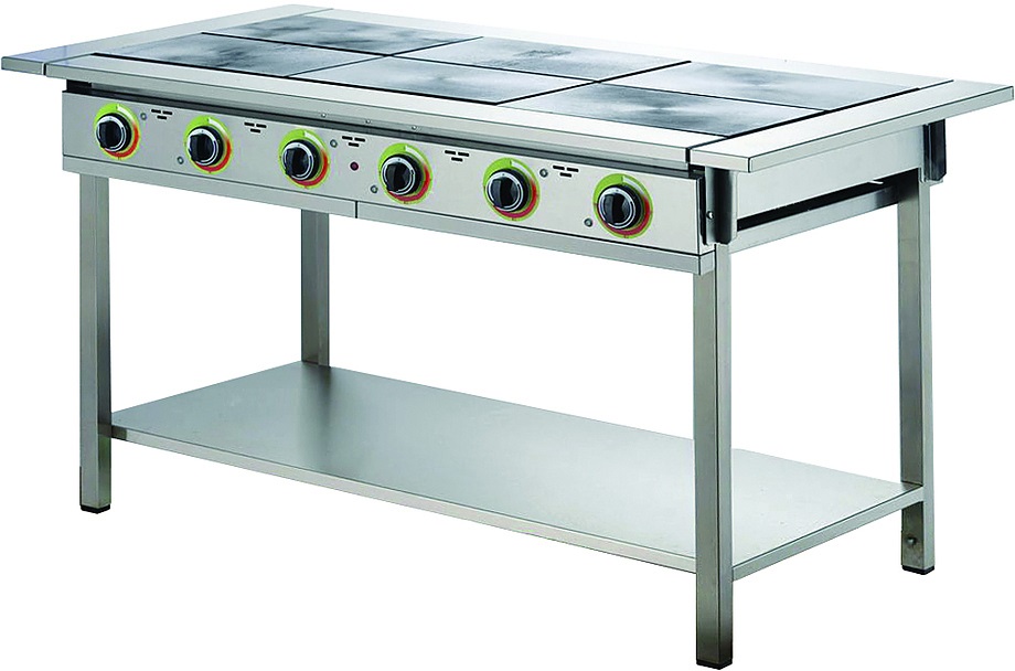 Плита электрическая Gabino S6P используется на предприятиях общественного питания, торговли и пищевых производствах для приготовления блюд в наплитной посуде. Возможность ступенчатой регулировки мощности и раздельной регулировки мощности верхнего и нижнего блоков ТЭНов. Плита оснащена индикационными лампами включения, съемными боковыми полками, сплошной нижней полкой и ножками, регулируемыми по высоте. Материал лицевой, боковой и задней поверхности - нержавеющая сталь, материал подставки - углеродистая сталь с полимерным покрытием.