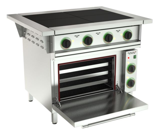 Gabino S4F-01 используется на предприятиях общественного питания, торговли и пищевых производствах для приготовления блюд в наплитной посуде. Возможность ступенчатой регулировки мощности и раздельной регулировки мощности верхнего и нижнего блоков ТЭНов. Плита оснащена индикационными лампами включения, съемными боковыми полками, духовым шкафом и ножками, регулируемыми по высоте. Материал лицевой, задней, боковой поверхности и духового шкафа.