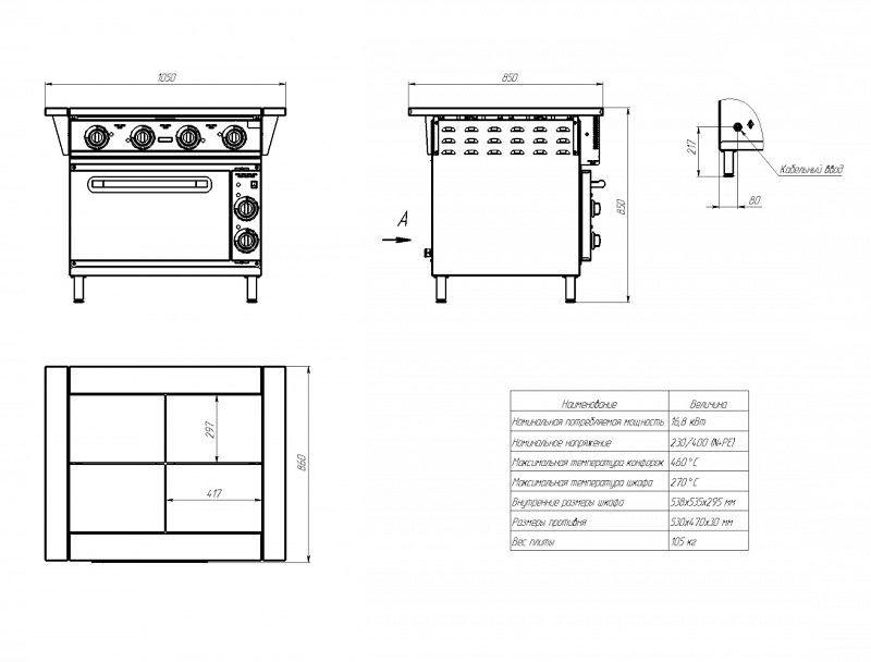 - Мощность жарочного шкафа: 4,8 кВт