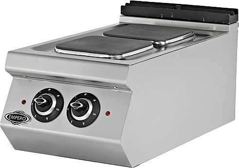 Плита электрическая EMP.PLS.7KE010 предназначается для приготовления блюд широкого спектра в наплитной посуде на предприятиях общественного питания, торговли и пищевых производствах. Плита оснащена 2 терморегуляторами, 6 положений у каждого, а также легка в очистке. Материал корпуса - нержавеющая сталь.