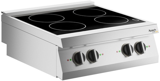 Индукционная плита Apach Chef Line LRI89 700-й серии предназначена для приготовления различных блюд из мяса, птицы, рыбы и овощей в наплитной посуде на предприятиях общественного питания, торговли и пищевых производствах. Кадлая из 4 зон нагрева имеет 6 уровней мощности и световой индикатор. Материал корпуса - нержавеющая сталь AISI 304 (толщина 2 мм).