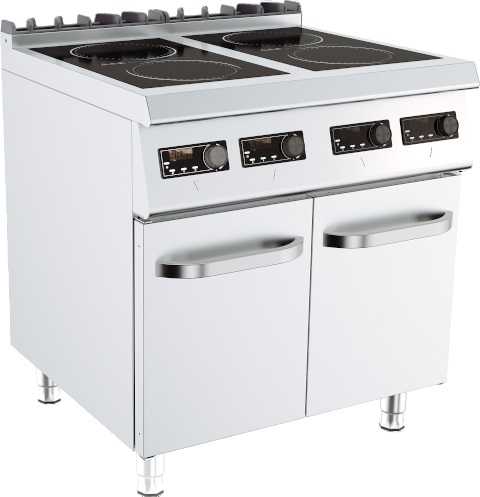 Индукционная плита Kusina G7IN200E используется на предприятиях общественного питания, торговли и на пищевых производствах для приготовления широкого спектра блюд, жарки полуфабрикатов из мяса, рыбы, овощей и выпечки. Нагревается непосредственно дно посуды, а не поверхность плиты, за счет чего экономится время для приготовления пищи. Для индукционных плит используется специальная посуда с дном из ферромагнитного металла. Поверхность плиты остается холодной даже в момент приготовления пищи. Модель оборудована 2 сплошными поверхностями с 2х2 конфорками, независимыми терморегуляторами, внутренней термической защитой от перегрева, 2 распашными дверями и 4 регулируемыми по высоте ножками. Материал корпуса - нержавеющая сталь.