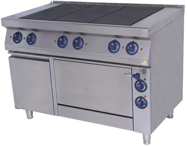 Электрическая плита Kovinastroj ESK-T69/1-0 серии 900 используется на предприятиях общественного питания и торговли для приготовления различных блюд из мяса, овощей, рыбы, выпечки мучных и кондитерских изделий. Данная модель имеет электромеханическое управление и защитный термостат. Материал конфорок - чугун, материал внутренней дверцы и ручки - высококачественная нержавеющая сталь AISI 304, материал корпуса и опор ножек - высококачественная нержавеющая сталь AISI 304.