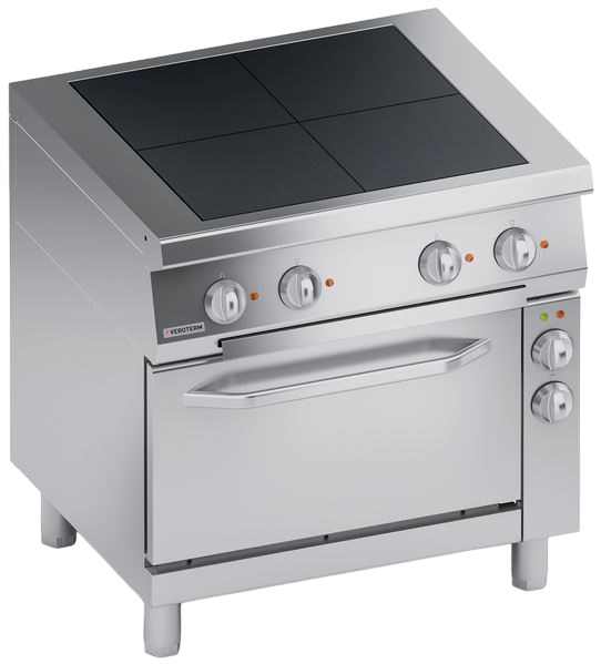 Электрическая плита Veroterm VT7RUE10FV серии 700 используется на предприятиях общественного питания, торговли и пищевых производствах для приготовления различных блюд в наплитной посуде. Модель оснащена механическим управлением, индикаторам, духовым шкафом с конвекцией и регуляторами температуры. Материал изделия - высококачественная нержавеющая сталь (толщина 1 мм).