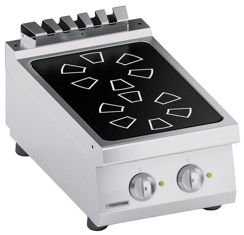 Индукционная плита Veroterm VT7CIE05TT серии 700 используется на предприятиях общественного питания, торговли и пищевых производствах для приготовления различных блюд в наплитной посуде. Модель оснащена механическим управлением, индикаторам и регуляторами температуры. Материал изделия - высококачественная нержавеющая сталь AISI 430 (толщина 1 мм), материал конфорок - Швейцарская стеклокерамика (толщина 6 мм).