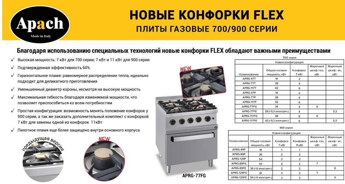 Газовая плита Apach APRG-117P/PL 700-й серии используется на предприятиях общественного питания, торговли и пищевых производствах для приготовления широкого спектра блюд из мяса, птицы, рыбы и овощей в наплитной посуде. Управление при помощи электромеханической панели. Плита оснащена гидроизолированной прессованной поверхностью. Поставляется на открытой поставке с регулируемыми по высоте ножками и герметично вмонтированными конфорками. Материал корпуса, рабочей поверхности, панели управления и вытяжной решетки - нержавеющая сталь AISI 304, материал боковой и задней панели - нержавеющая сталь AISI 430, материал решеток - чугун.