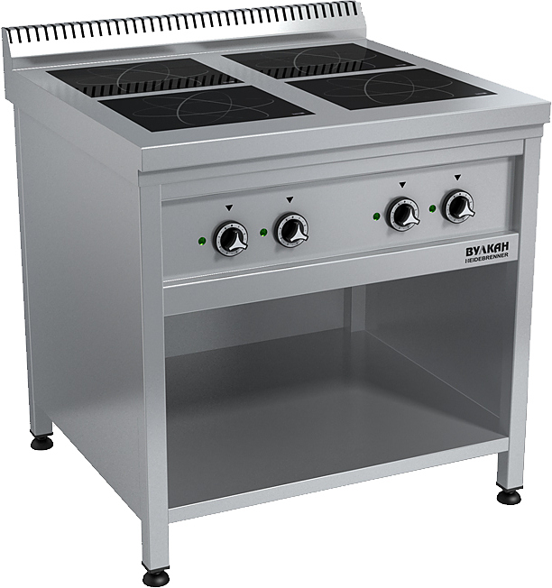 Индукционная плита Вулкан ETK4 серии 700 используется для приготовления широкого спектра блюд в специализированной посуде на предприятиях общественного питания, торговли и пищевых производствах. Модель оснащена терморегуляторами, индикаторами нагрева, бортом, полуоткрытым шкафом и опорами. Материал корпуса - высококачественная нержавеющая сталь.