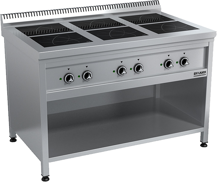 Индукционная плита Вулкан ETK6 серии 900 используется для приготовления широкого спектра блюд в специализированной посуде на предприятиях общественного питания, торговли и пищевых производствах. Модель оснащена терморегуляторами, индикаторами нагрева, бортом, полуоткрытым шкафом и опорами. Материал корпуса - высококачественная нержавеющая сталь.