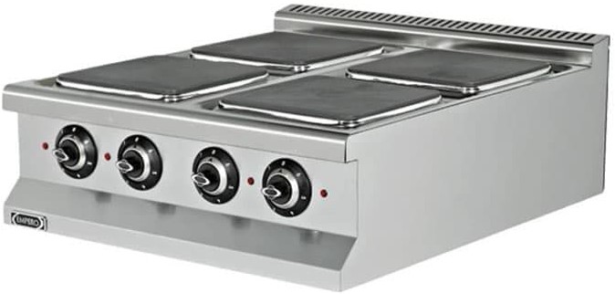 Плита электрическая Empero EMP.9KE020-P-2016 предназначается для приготовления блюд широкого спектра в наплитной посуде на предприятиях общественного питания, торговли и пищевых производствах. Плита оснащена механическим управлением и 4 терморегуляторами. Материал корпуса - нержавеющая сталь.