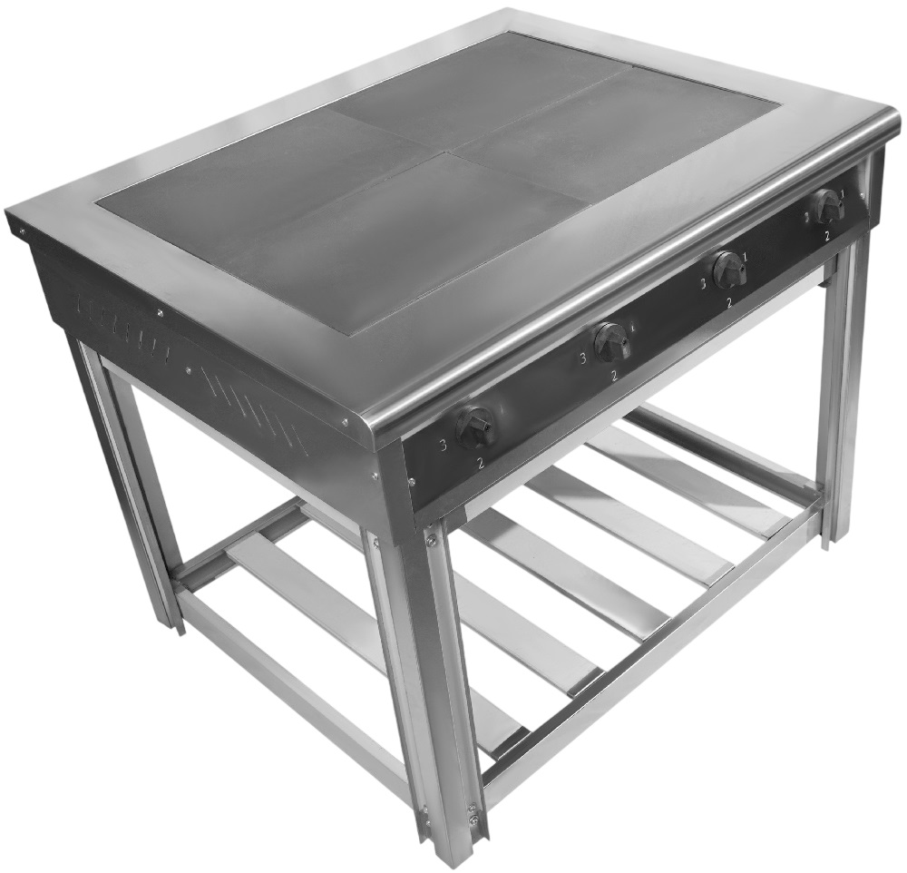 Электрическая плита OBOD ЧП-02 предназначена для приготовления широкого спектра блюд в наплитной посуде на предприятиях общественного питания, торговли и пищевых производствах. Плита оснащена 2 независимыми варочными зонами, задним бортом, открытой подставкой и электромеханической панелью управления. Материал корпуса - нержавеющая сталь, материал рабочей поверхности - чугун.