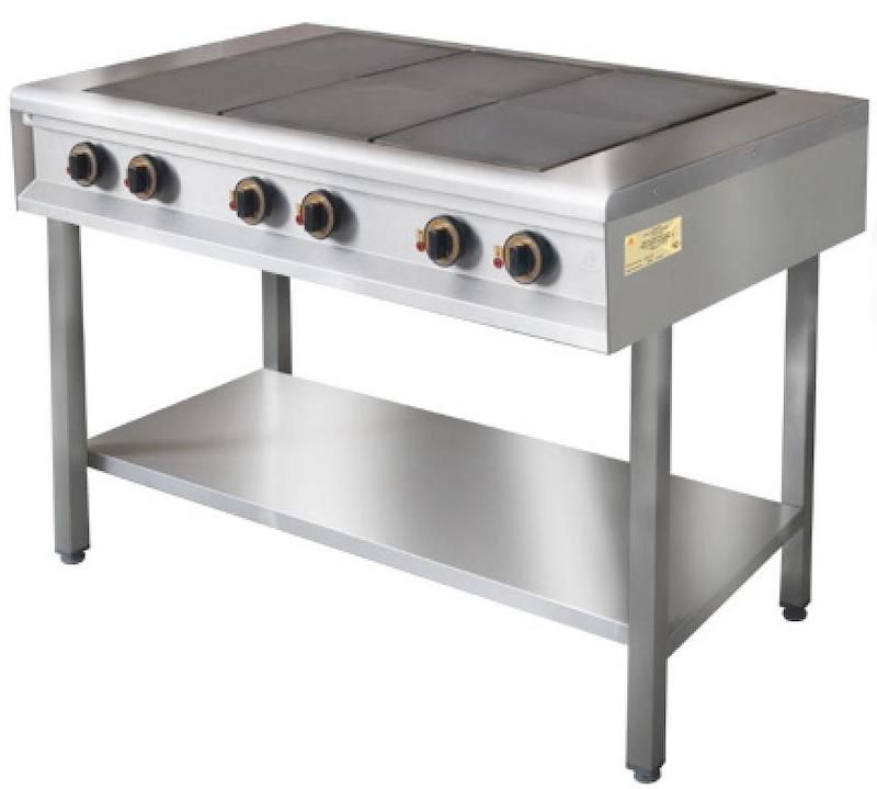 Электрическая плита ITERMA ПКЭ-6ПР-1475/850/860-24 предназначена для приготовления различных блюд в наплитной посуде на предприятиях общественного питания и торговли. Модель оснащена полкой и ножками, регулирующимися по высоте. Корпус и полка выполнены из нержавеющей стали.