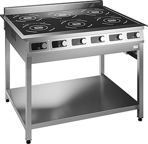 Индукционная плита EKSI ИПЭ-6 Б 3,5 предназначена для приготовления широкого спектра блюд на предприятиях общественного питания и торговли. Модель оснащена расположенной под углом панелью управления с нависающим козырьком для защиты от пищевых загрязнений. Корпус выполнен из нержавеющей стали AISI 430, ножки - из нержавеющей трубы AISI 430 40x40 мм, рабочая поверхность - из стеклокерамики.