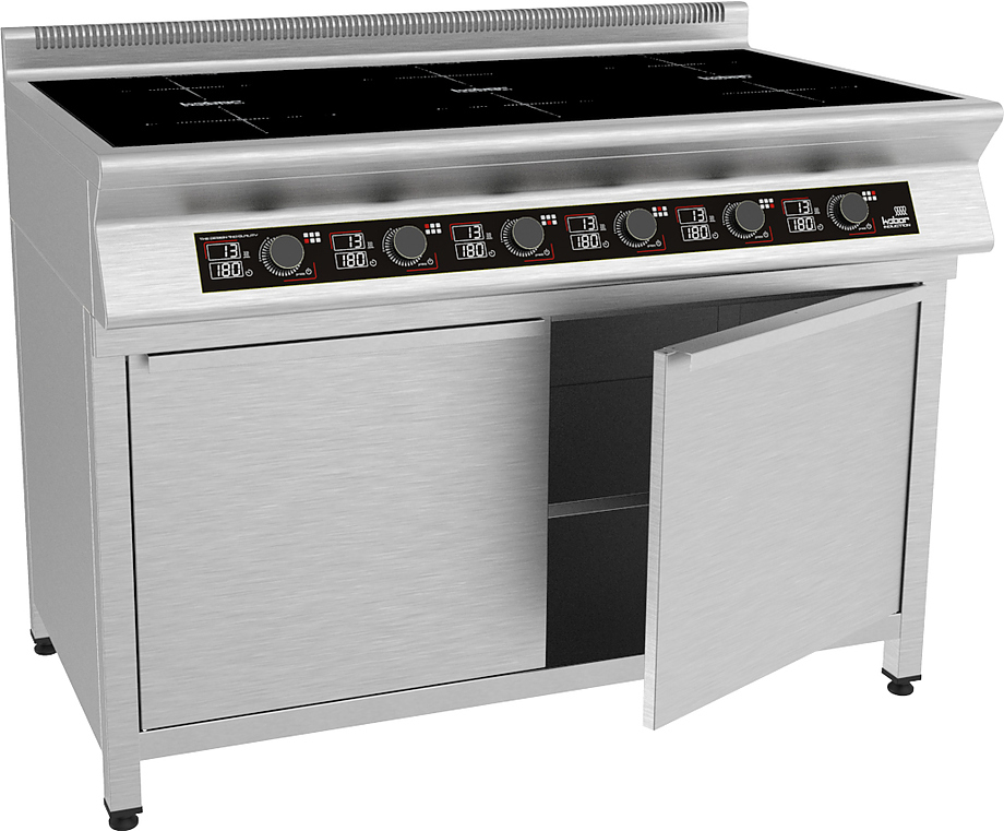 Индукционная плита Кобор I7-6S2 серии 700 предназначена для приготовления различных блюд в наплитной посуде на предприятиях общественного питания и торговли. Нагрев поверхности осуществляется почти мгновенно, а выделяемое тепло генерируется только на посуде, сама же плита нагревается незначительно, что позволяет избежать ожогов и потери тепла. Корпус выполнен из нержавеющей стали AISI 304, варочная панель - из монолитной высокопрочной стеклокерамики.