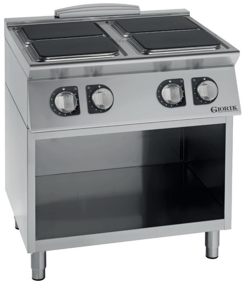 Плита Giorik Unika 700 CE74QG используется для приготовления широкого спектра блюд на предприятиях общественного питания, торговли и пищевых производствах. Модель оснащена механическим управлением, защитным термостатом от перегрева, световыми индикаторами работы, открытым стендом для хранения различного инвентаря и регулируемыми ножками.Материал корпуса - высококачественная нержавеющая сталь, материал конфорок - чугун.