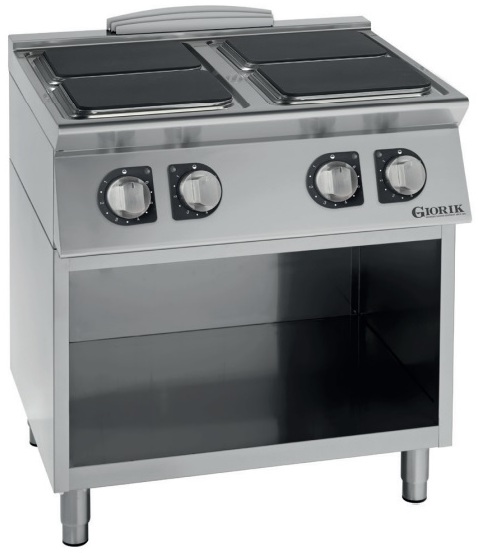 Плита Giorik Unika 900 CE94QG используется для приготовления широкого спектра блюд на предприятиях общественного питания, торговли и пищевых производствах. Модель оснащена механическим управлением, защитным термостатом от перегрева, световыми индикаторами работы, открытым стендом для хранения различного инвентаря и регулируемыми ножками.Материал корпуса - высококачественная нержавеющая сталь, материал конфорок - чугун.