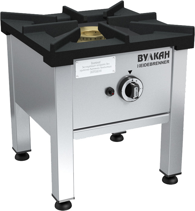 Газовая плита-табурет Вулкан ПРГ-IIА-1 81971 предназначена для приготовления первых, вторых и третьих блюд в наплитной посуде на предприятиях общественного питания и торговли. Модель оснащена газ-контролем, пьезорозжигом и запальной горелкой.