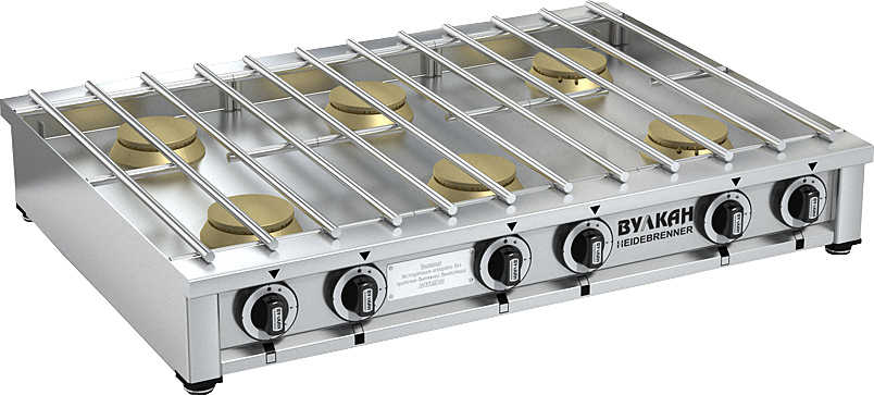 Газовая плита Вулкан ПРГ-IIA-6М Slim предназначена для приготовления первых, вторых и третьих блюд в наплитной посуде на предприятиях общественного питания и торговли. Модель оснащена газ-контролем. Корпус и решетка выполнены из нержавеющей стали, газовые горелки - из латуни.