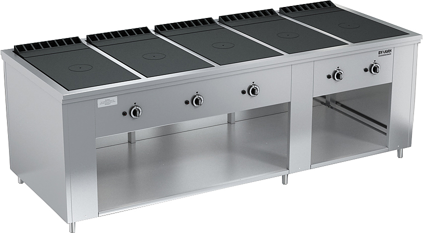 Газовая плита Вулкан ПРГ-IIA-5С Maxi предназначена для приготовления первых, вторых и третьих блюд в наплитной посуде на предприятиях общественного питания и торговли. Модель оснащена газ-контролем, пьезорозжигом и запальной горелкой. Корпус выполнен из нержавеющей стали, рабочая поверхность - из чугуна.