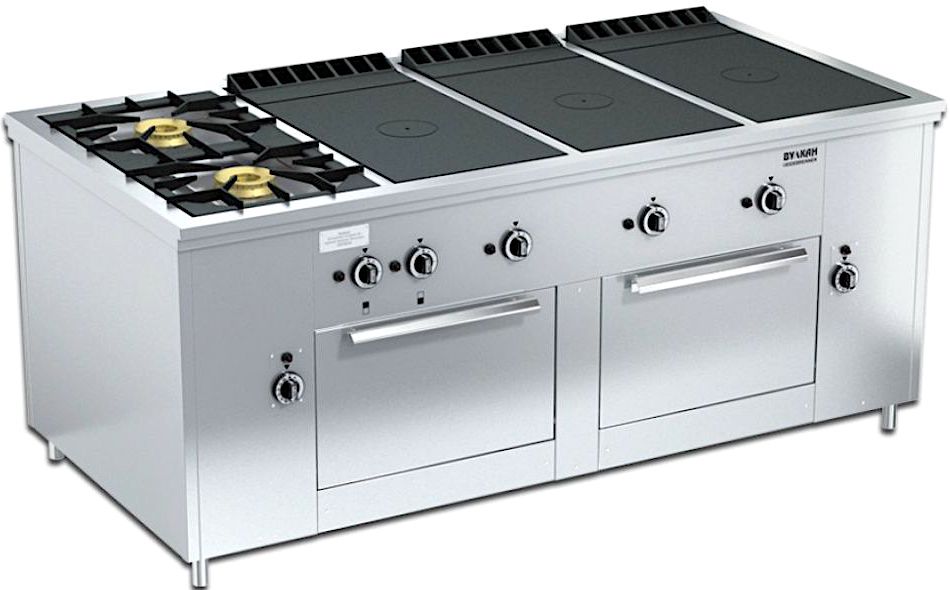 Газовая плита Вулкан ПРГ-IIA-8-3 2ДШ Maxi предназначена для приготовления первых, вторых и третьих блюд в наплитной посуде, выпечки хлебобулочных и кондитерских изделий на предприятиях общественного питания и торговли. Модель оснащена 2 секционными и 3 сплошными горелками, газ-контролем, пьезорозжигом и запальной горелкой. Корпус выполнен из нержавеющей стали.