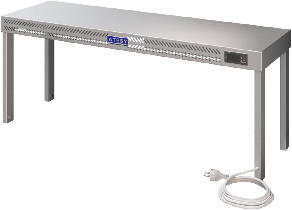 Настольная тепловая полка ATESY ПТ-1-1200-01 предназначается для поддержания посуды и заготовок в теплом состоянии на предприятиях общественного питания, торговли и пищевых производствах. Полка оснащена терморегулятором с цифровым дисплеем и 2 керамическими ТЭНами. Материал корпуса - нержавеющая сталь AISI 430.