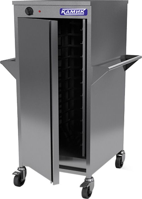 Тепловой шкаф КАМИК ШТ-50651 используется на предприятиях общественного питания и торговли для подогрева, демонстрации и кратковременного хранения готовых блюд в горячем состоянии. Модель оснащена распашной дверью с петлями слева. Корпус выполнен из нержавеющей стали AISI 430 толщиной 1 мм.