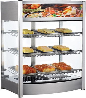 Тепловая витрина Kocateq RTR 137L предназначена для демонстрации, подогрева и кратковременного хранения и продажи булочек, пирогов и различных закусок на предприятиях общественного питания, торговли и пищевых производствах. Модель оборудована ТЭНами, аналоговым термостатом и наклонными полками. Материал стоек - декоративный алюминиевый профиль, камеры - нержавеющая сталь AISI 304, полок - хромированная сталь.
