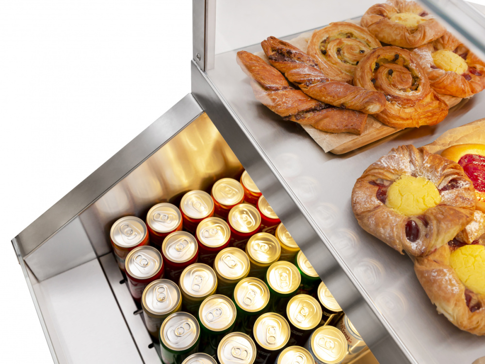 Тепловая витрина RoboLabs ПХТ-075Д используется на предприятиях общественного питания, торговли и пищевых производствах для разогрева, кратковременного хранения готовых блюд и напитков. Модель оснащена колесами диаметром 50 мм, тепловой поверхностью с нагревающими керамическими элементами, галогенновой лампой, раздвижными дверками и охлаждаемой поверхностью с ванной и разделителями, светодиодной подсветкой, раздвижными дверьми и сливным отверстием. Материал корпуса - высококачественная нержавеющая сталь AISI 430, материал нижней части - оцинкованная сталь.