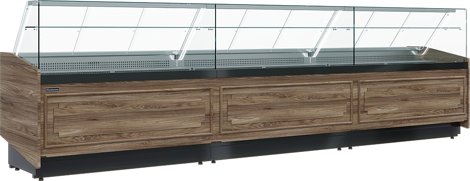 Витрина тепловая Carboma KC80 SH 1,2-1 BORNEO 2 используется на предприятиях общественного питания, торговли и пищевых производствах для демонстрационной выкладки, кратковременного хранения и поддержания в горячем состоянии готовых блюд, кондитерских и хлебобулочных изделий. Модель оснащена термостатом, LED-освещением и регулируемыми опорами. Материал зоны выкладки и столешницы - шлифованная нержавеющая сталь, внешней панели – ламинированная древесноволокнистая плита средней плотности (МДФ), нижней облицовки и профиля под стекло – сталь с покрытием черной краской (RAL 9005), верхней стойки – легкий полиметилметакрилат (ПММА) высокой степени прозрачности, термоизоляции – пенополиуретан.