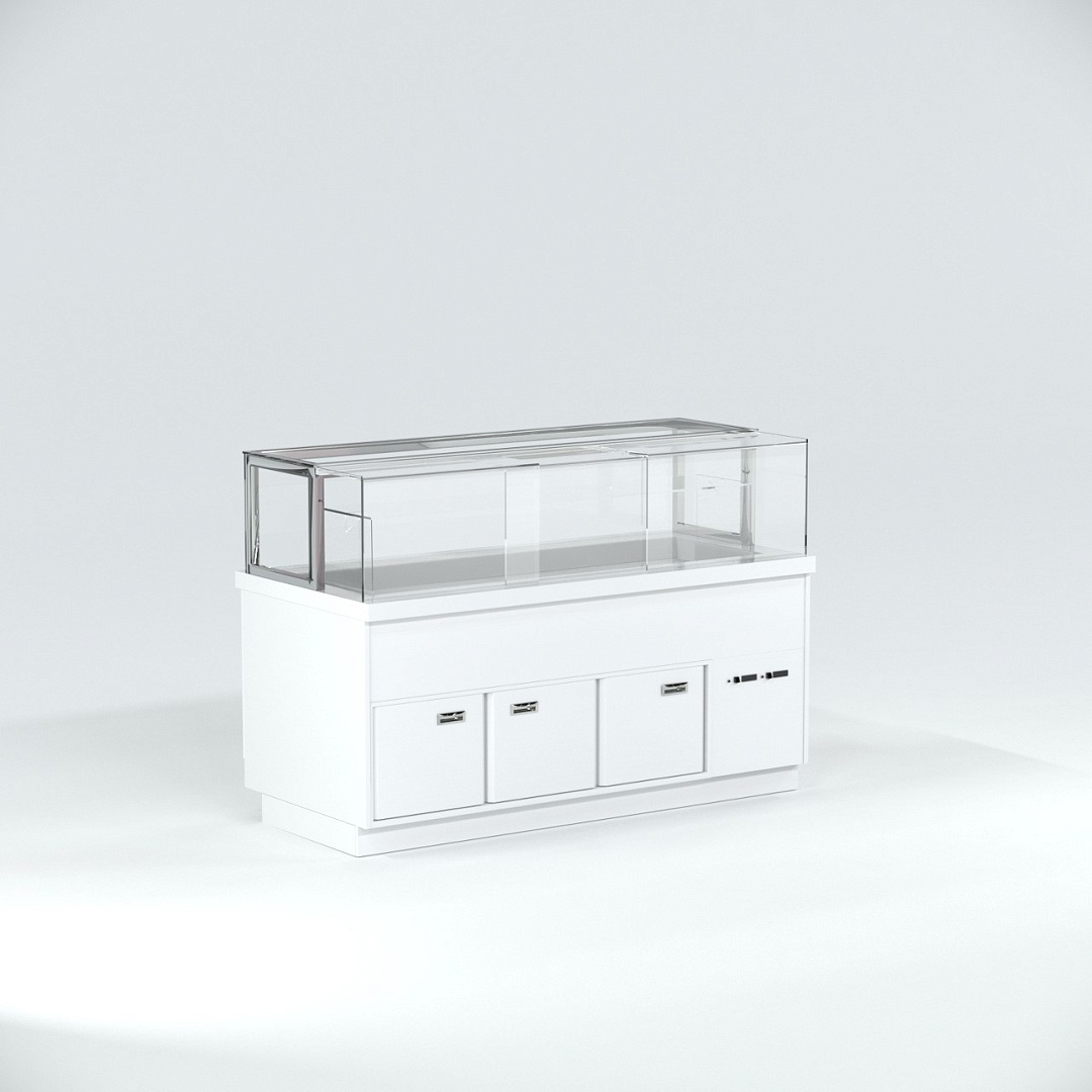 Витрина тепловая Finist Maria Mt-19-9 используется для демонстрационной выкладки, подогрева и кратковременного хранения готовых блюд и выпечки на предприятиях общественного питания и торговли. Модель оснащена микропроцессорным блоком, автоматической оттайкой, выдвижной полкой, подсветкой и дверьми-купе. Материал фронтальных и боковых панелей облицовки - МДФ панели, материал купола и полок - просветленное стекло, материал столешницы - искусственный камень.