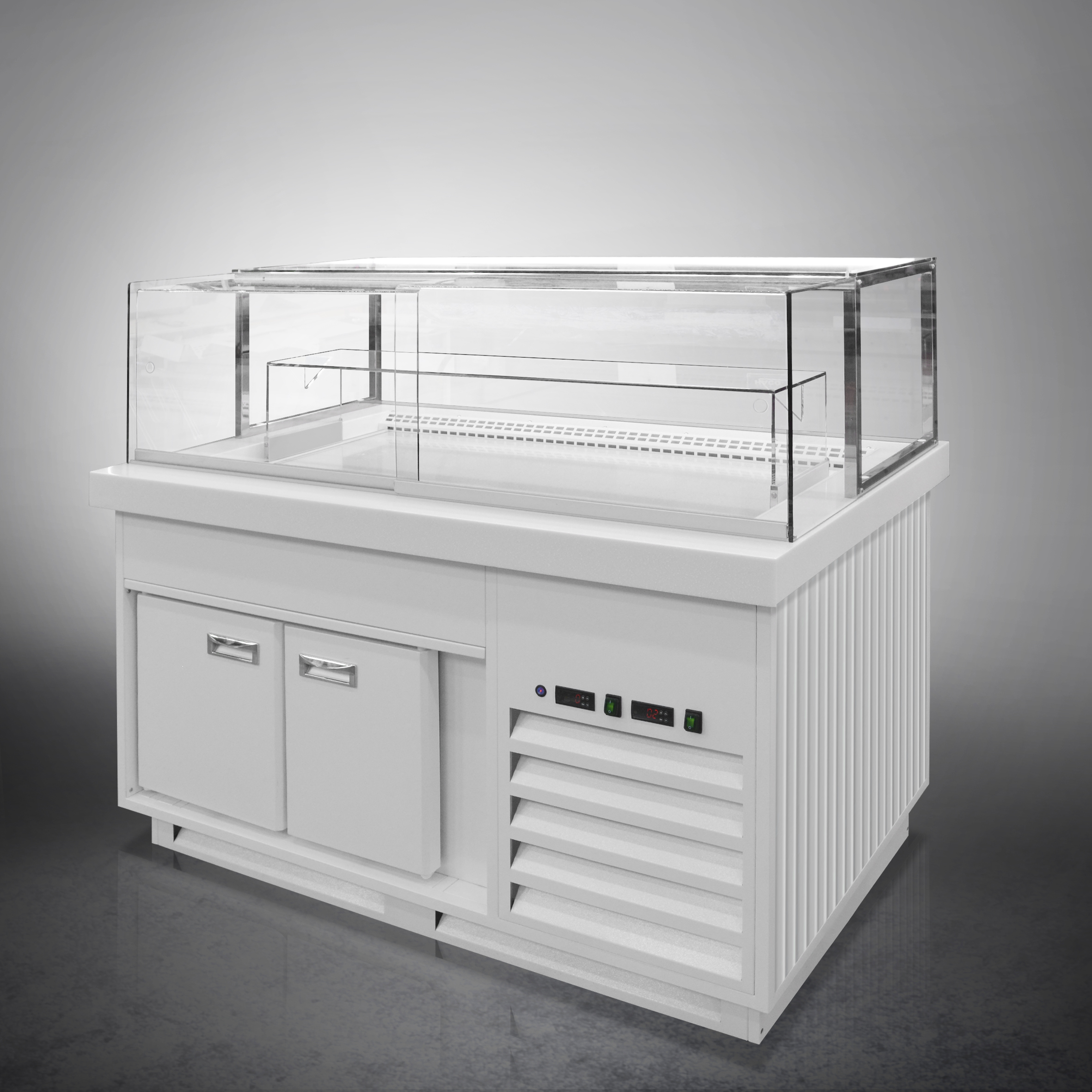 Витрина тепловая Finist Maria Mt-20-9 используется для демонстрационной выкладки, подогрева и кратковременного хранения готовых блюд и выпечки на предприятиях общественного питания и торговли. Модель оснащена микропроцессорным блоком, автоматической оттайкой, выдвижной полкой, подсветкой и дверьми-купе. Материал фронтальных и боковых панелей облицовки - МДФ панели, материал купола и полок - просветленное стекло, материал столешницы - искусственный камень.
