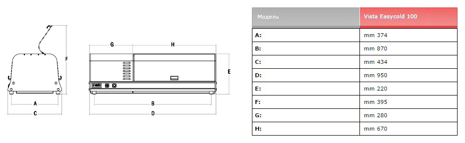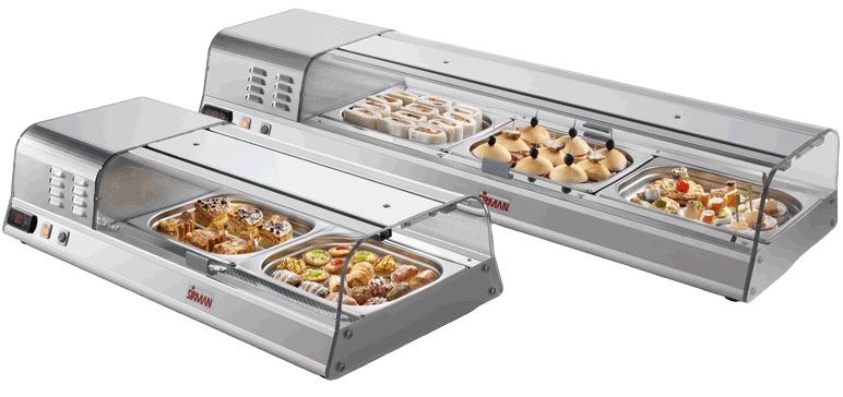 Тепловая витрина Sirman VISTA EASYCOLD 100 предназначена для демонстрации, подогрева и кратковременного хранения готовых пирогов, пицц, булочек и других кондитерских изделий на предприятиях общественного питания и торговли. Модель оснащена цифровым термостатом с дисплеем, показывающим температуру, и дополнительными световыми индикаторами.