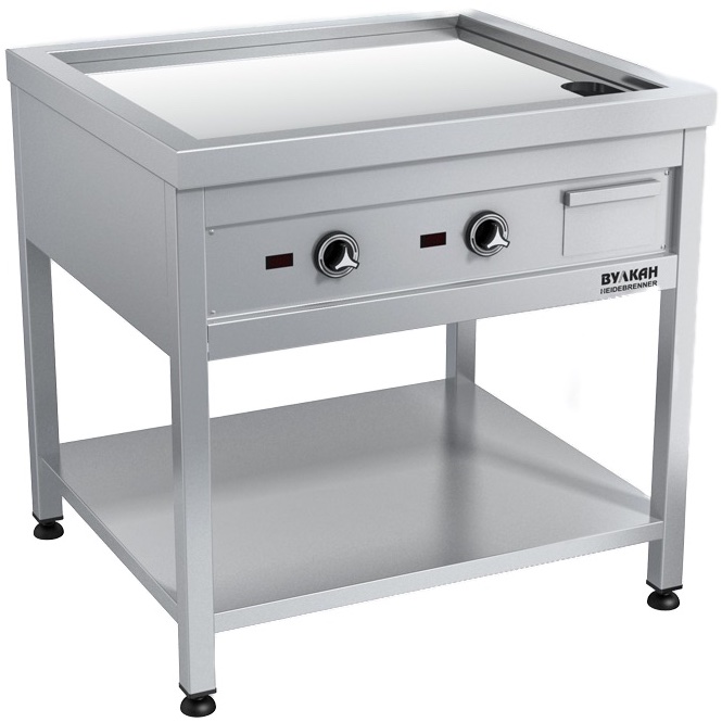 Жарочная поверхность теппан-яки Вулкан BPD 02 «Мисава» предназначена для приготовления различных блюд на предприятиях общественного питания, торговли и пищевых производствах. Модель оснащена газконтролем, запальной горелкой, пьезоподжигом, коллектором для выхода отработанного газа, сливным отверстием и поддоном для сбора масла, жира и остатков пищи. Материал жарочной поверхности - зеркальная хромированная сталь.
