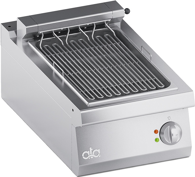 Настольный гриль ATA K7EGD05TT предназначается для жарки различных продуктов на предприятиях общественного питания, торговли и пищевых производствах. Съемный резервуар для воды со сливным отверстием. Материал корпуса, рабочей поверхности и съемного водосборного бака - нержавеющая сталь AISI 304.
