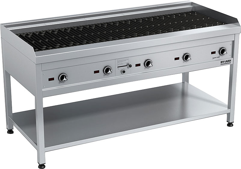 Водяной гриль Вулкан ЕТК-BST5 «Маккензи» предназначен для жарки различных продуктов на предприятиях общественного питания и торговли. В процессе приготовления блюда получают такой же вкус, аромат и внешний вид, словно их готовили на открытом огне. Модель оснащена сливным краном и поддоном для воды, благодаря которой продукты приобретают дополнительную сочность и мягкость без образования дыма и чада.
