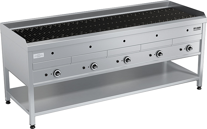 Водяной гриль Вулкан BPD 05V «Ускут» предназначен для жарки различных продуктов на предприятиях общественного питания и торговли. В процессе приготовления блюда получают такой же вкус, аромат и внешний вид, словно их готовили на открытом огне. Модель оснащена газ-контролем, пьезоподжигом, запальной горелкой, защитным бортом от разбрызгивания и поддоном для воды, благодаря которой продукты приобретают дополнительную сочность и мягкость без образования дыма и чада.