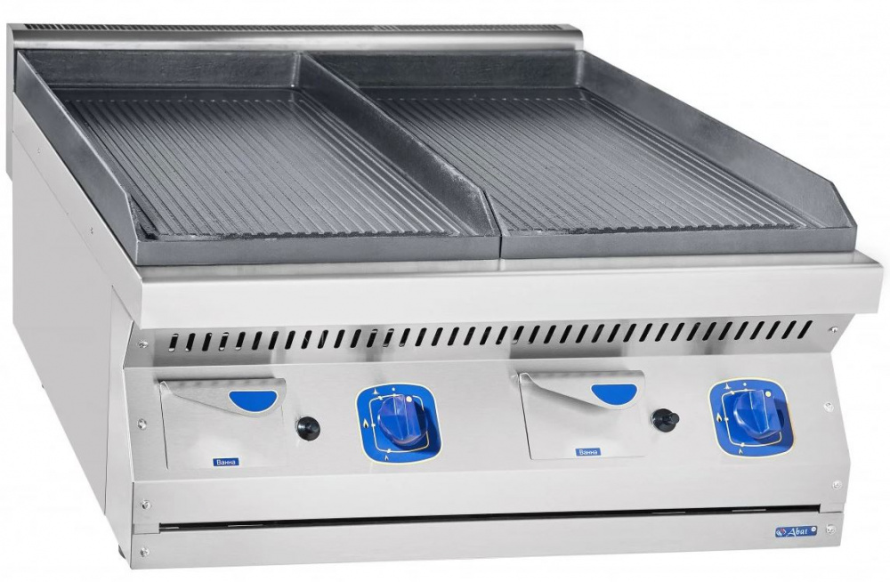 Жарочная поверхность Abat ГАКО-80/2Н-Ч-02 используется на предприятиях общественного питания, торговли и пищевых производствах для жарки мяса, рыбы, овощей и других продуктов. 2 рифленые жарочные поверхности. Регулировка температурного режим при помощи терморегулятора. Поверхность оснащена желобом для стекания жидкости, бортом, защищающим от брызг, и контрольными лампами. Материал передней, задней и боковых поверхностей - нержавеющая сталь.