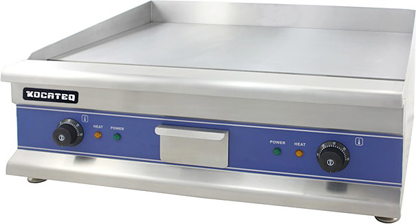 Гриль-сковорода Kocateq GH650 используется на предприятиях общественного питания, торговли и пищевых производствах для приготовления жареных мясных блюд, рыбных стейков, колбасок, сосисок, сарделек, шпикачек, котлет для бургеров, овощей, оладьев и других продуктов питания. Модель оснащена гладкой рабочей зоной, термостатом с автоматическим отключением при его повреждении, световыми индикаторами, выдвижным лотком для сбора остатков пищи, масла и жира и ножками. Материал корпуса - высококачественная нержавеющая сталь AISI 201, материал жарочной поверхности - сталь, материал ножек - пластик.