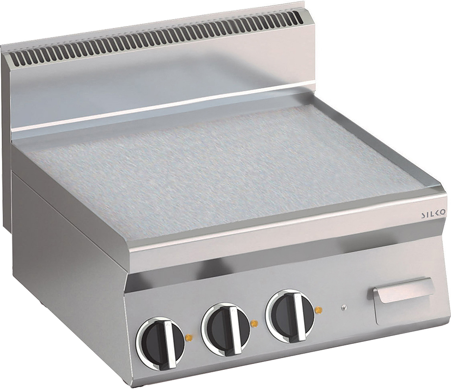 Жарочная поверхность SILKO EBE65TL серии 700 используется на предприятиях общественного питания, торговли и пищевых производствах для приготовления мясных, рыбных, овощных и других блюд. Модель оснащена электромеханическим управлением, защитным бортиком KFTP81 от разбрызгивания жира, независимыми терморегуляторами и ножками. Материал корпуса - высококачественная нержавеющая сталь.