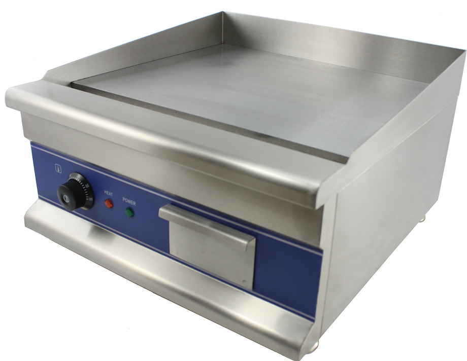Гриль-сковорода Kocateq GH500 используется на предприятиях общественного питания, торговли и пищевых производствах для приготовления жареных мясных блюд, рыбных стейков, колбасок, сосисок, сарделек, шпикачек, котлет для бургеров, овощей и других продуктов питания. Модель оснащена термостатом регулировки температуры, защитным термостатом и ножками. Материал корпуса - высококачественная нержавеющая сталь AISI 201, материал жарочной поверхности - сталь толщиной 12 мм, материал ножек - пластик.