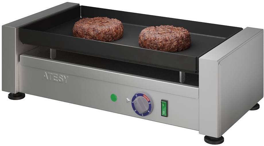 Жарочная поверхность ATESY Комбат ГП-6Т-450-02 используется на предприятиях общественного питания, торговли и пищевых производствах для приготовления мяса, птицы, рыбы и овощей. Модель оснащена механическим управлением, бортами, световым индикатором и опорами. Материал корпуса - пищевая нержавеющая сталь, материал жарочной поверхности - алюминиевый сплав с антипригарным покрытием.