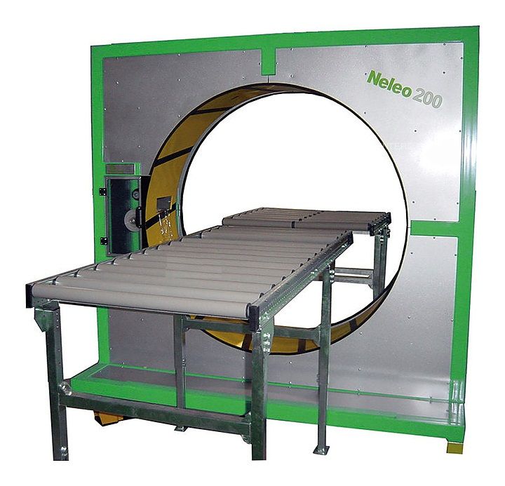 Упаковочная машина Plasticband Neleo 200 предназначена для упаковки, группировки и защиты длинномерных и крупногабаритных изделий, таких как молдинги, профили, алюминиевые трубы, элементы мебели и дверей в стрейч-пленку на предприятиях различных направлений. Модель оснащенаножной педалью для активации цикла упаковки.
