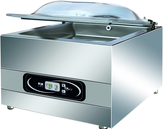 Вакуумный упаковщик камерного типа Lavezzini SUPREMA предназначен для высококачественной и быстрой вакуумной упаковки продуктов питания: жидких и твердых продуктов, для упаковки продуктов больше по размерам, чем камера упаковщика с помощью функции внешнего всасывания. Корпус выполнен из нержавеющей стали.