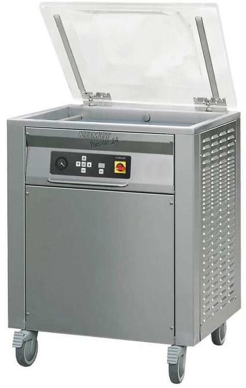 Вакуумный упаковщик KOMET PLUSVAC 24 используется предназначается для вакуумной упаковки мяса, сухофруктов, хлебобулочных изделий, гранулированных, порошкообразных и жидких продуктов на предприятиях общественного питания, торговли и пищевых производствах. Управление при помощи сенсорной панели, регулировка времени откачки воздуха и запайки. Упаковщик оснащен легкозаменяемой беспроводной запаечной планкой и заполняющими пластинами, регулирующими высоту. Материал корпуса - нержавеющая сталь, материал крышки - оргстекло.