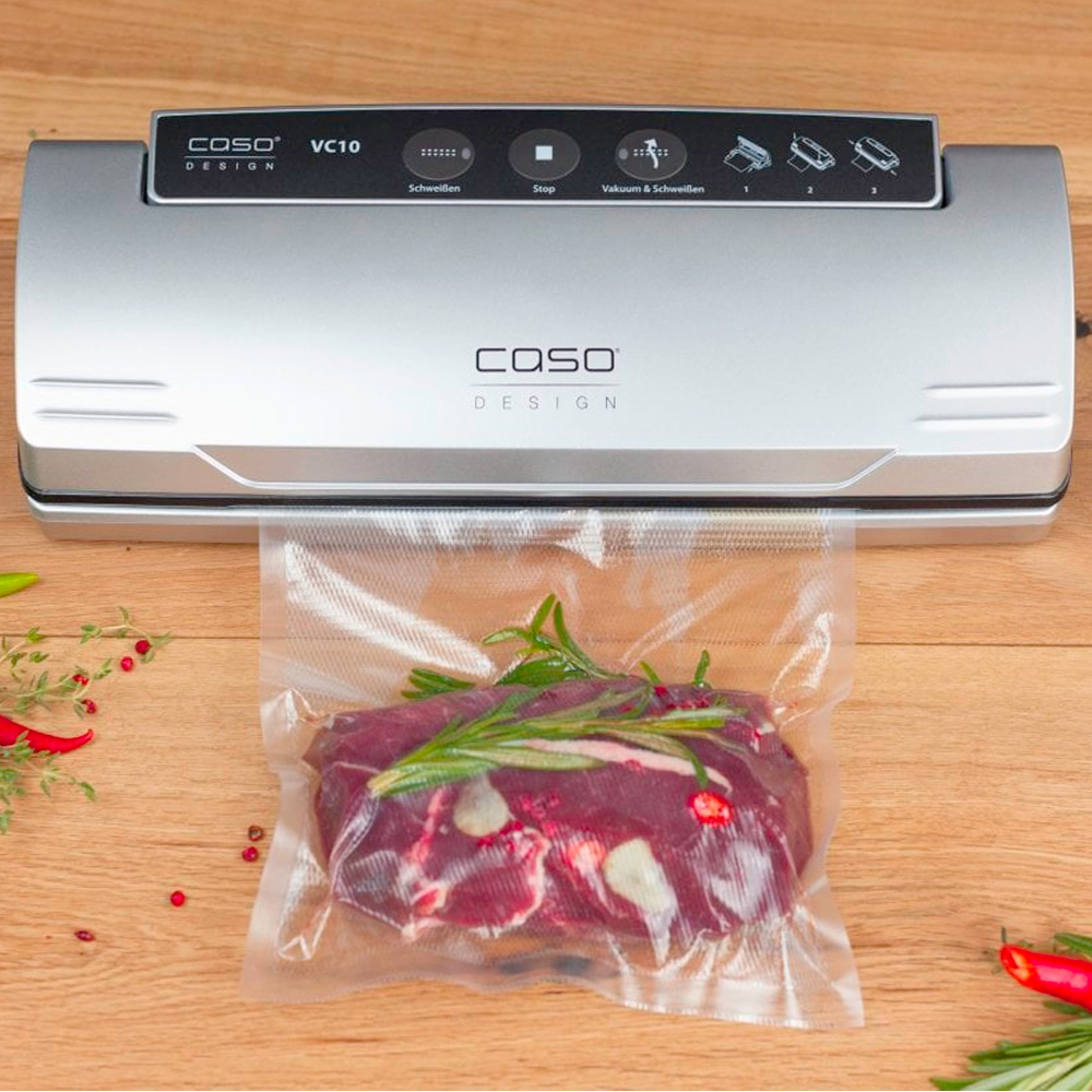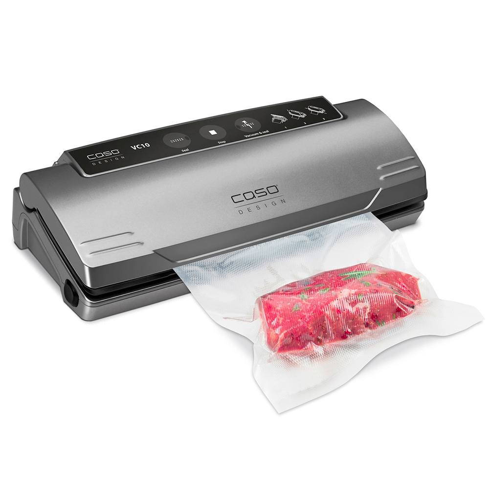 Вакуумный упаковщик CASO VC 10 PlusEdition используется на предприятиях пищевой промышленности, общественного питания и торговли для герметичной упаковки полуфабрикатов и готовых блюд в пакетах или контейнерах, что способствует продлению их срока хранения. Модель оснащена электронным контроллером температуры запаивания и кнопкой "Стоп". Материал корпуса - пластик.