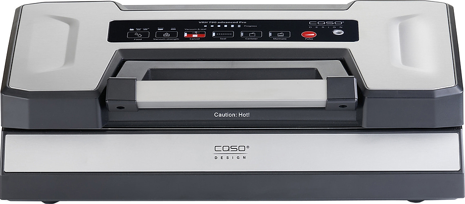 Вакуумный упаковщик CASO VRH 790 advanced используется на предприятиях пищевой промышленности, общественного питания и торговли для герметичной упаковки полуфабрикатов и готовых блюд в пакетах или контейнерах, что способствует продлению их срока хранения. Модель оснащена сенсорным управлением, белым светодиоидным дисплеем, индикацией режимов работы, электронным контроллером температуры сварочного шва, съемным поддоном для сбора влаги и ручкой. Материал корпуса и ручки - высококачественная нержавеющая сталь.