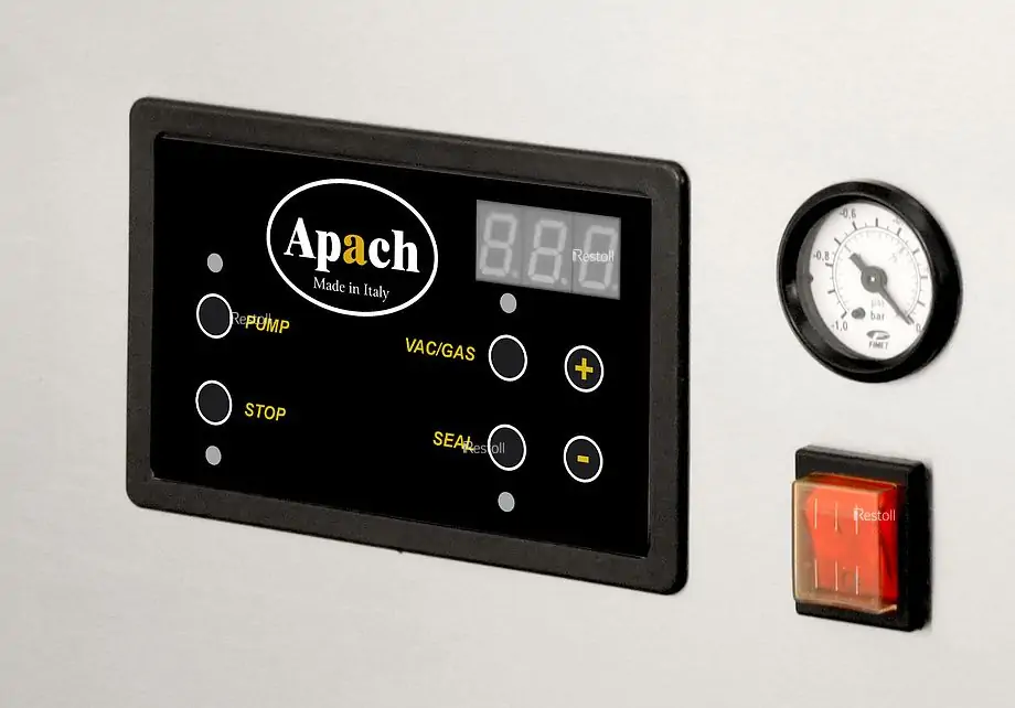 Вакуумный упаковщик Apach AVM425 используется на предприятиях общественного питания и торговли для упаковки различных продуктов в специальных пакетах для увеличения срока их хранения. Модель оснащена влагозащищенной электронной панелью управления с дисплеем, полностью автоматическим циклом упаковки и бесшовной камерой с закругленными углами, что облегчает процесс чистки. Корпус и камера выполнены из нержавеющей стали.